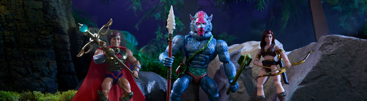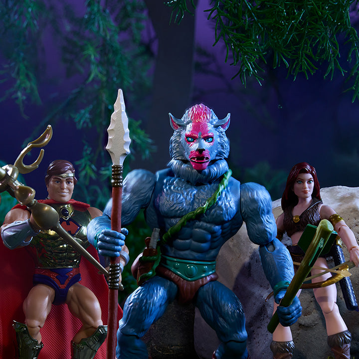 From the mists of Preternia a masked enigma emerges: the Masters of the Universe Origins Red Shadow action figure. A beast man shunned by his people, Red Shadow was forced to wear a mask and serve the Great Black Wizard until he was freed by Moss Man. The mask remains, but Red Shadow uses his abilities (and included club, dagger, and spear) to fight for King Grayskull.