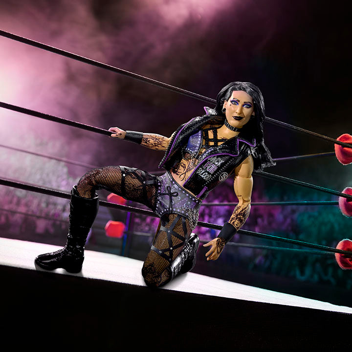 Rhea Ripley™, a multi-world champion, is being honoured with our first WWE Collectors doll. This made-to-order ode to the Eradicator features a unique doll sculpt to match her athletic build, and wears her entrance jacket and ring attire from her WWE SummerSlam® 2024 bout. She’s ready to rock opponents with The Riptide and hoist the included title in victory.
